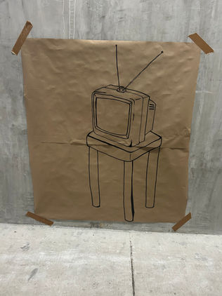 For this concept, we wanted to really focus on showing the disconnection from the world. We began concepting and decided on a 2D environment. On the day of the shoot, I was told that everyone really wanted a "living room" scene so I quickly drew a 3D box TV and matching carpet to set the final scene. For fun, I also quickly created a window piece for the models to interact with. Here is my process and how the photographers captured the set.